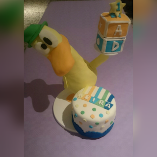 Pato hecho con rkt y bizcocho relleno con crema de chocolate y crema de yogurt